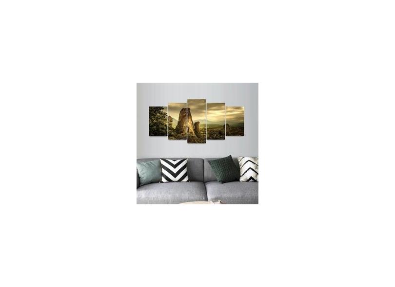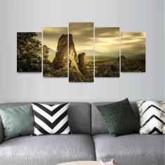 Quadro Rocha Pôr do Sol Grécia Mosaico 5 Peças