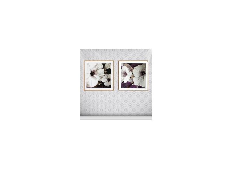 Quadro Super Luxo Geranium “A & B” para Sala Quarto Hotéis Escritório, 60x60cm C/ Vidro 2mm e Moldura na cor Envelhecido