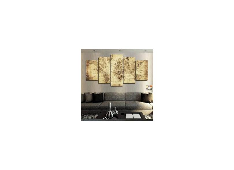 Quadros Mapa Mundi Antigo 63x130mt- em Tecido 5 peças