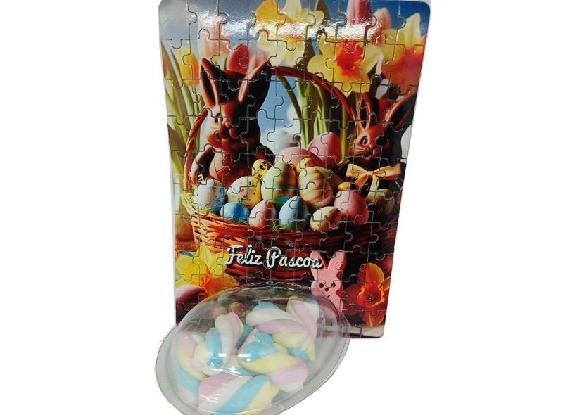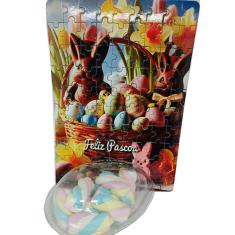 Presente de Páscoa Marshmallow Colorido + Quebra-cabeça Feliz Páscoa de 90 peças