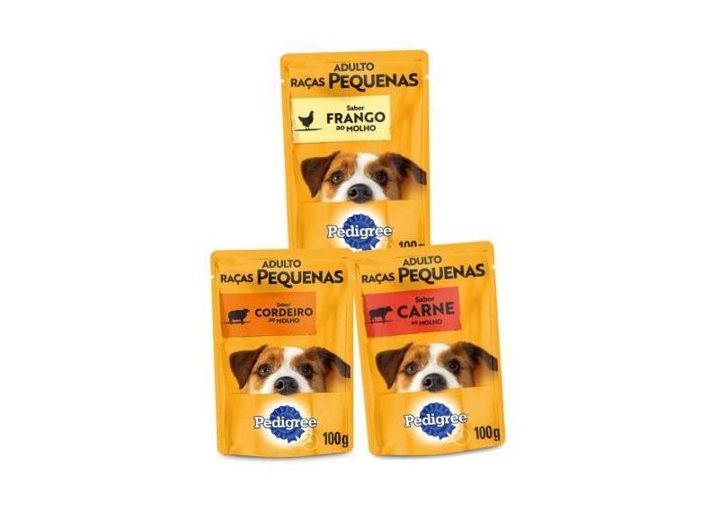 Kit Pedigree Sachê Cães Adultos Raças Pequenas Cordeiro + Frango + Car