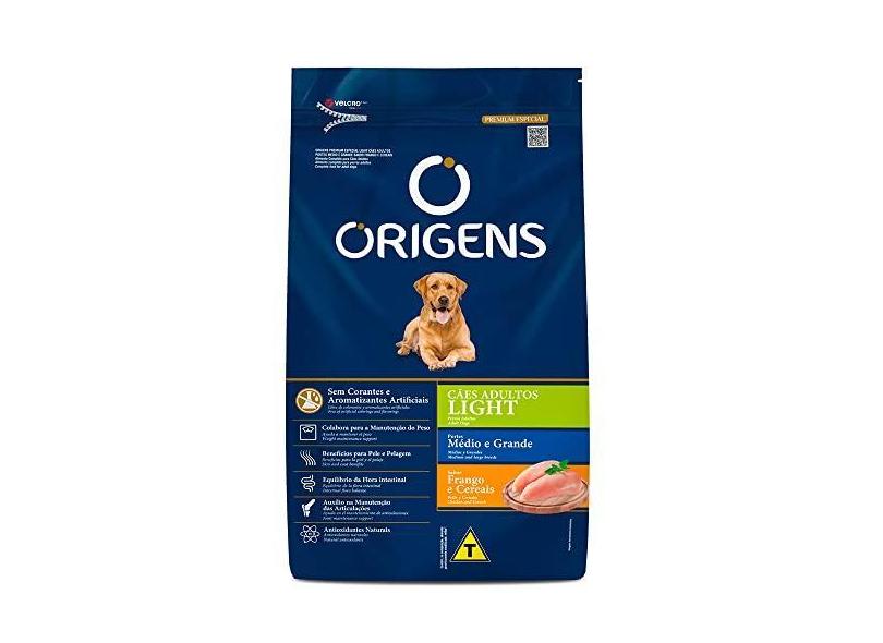 Ração Origens Cães Adultos Light Raças Médias e Grandes Frango e Cereais - 15kg