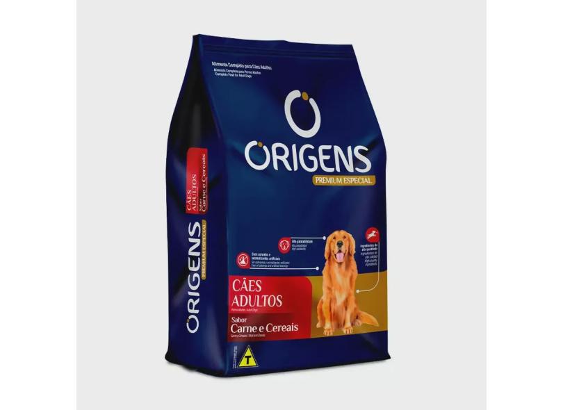 Ração Origens para Cães Adultos Sabor Carne e Cereais - 20kg