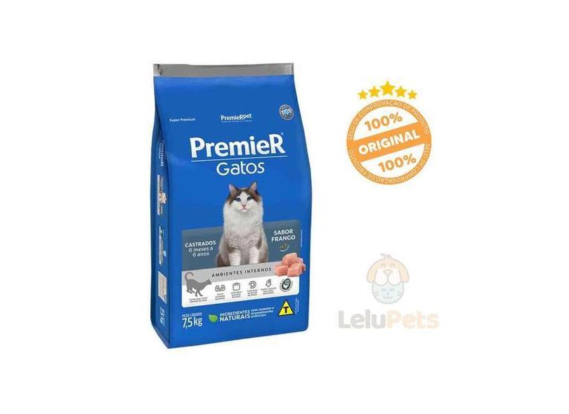 Ração Premier Gatos Castrados 6 Meses A 6 Anos Frango 7,5Kg - Premier