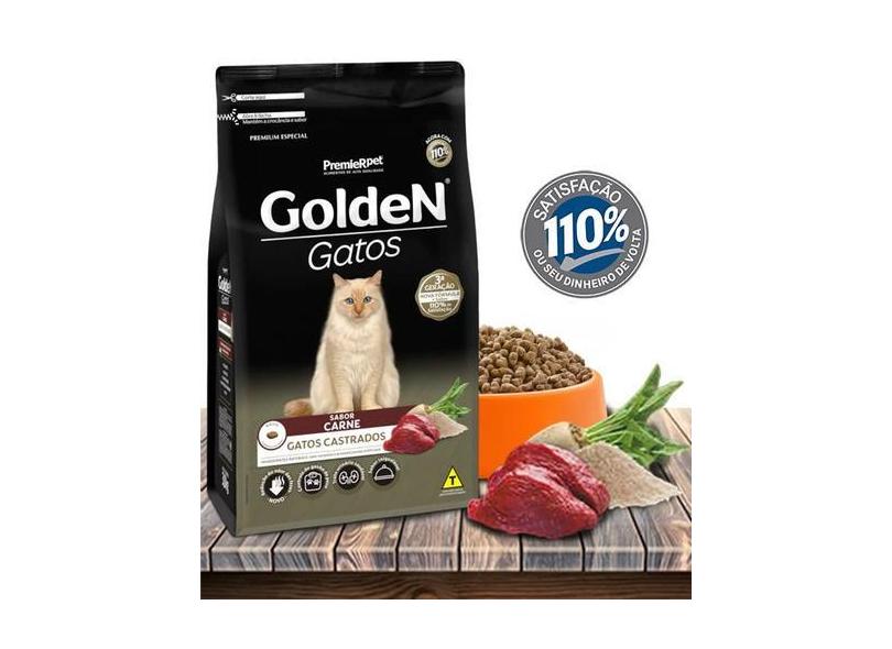 Ração Seca PremieRPet Golden Carne para Gatos Adultos Castrados - 3Kg