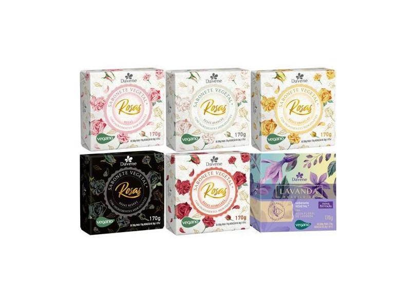 6 Sabonetes Vegetal Aroma Das Rosas E Lavanda 170G Davene