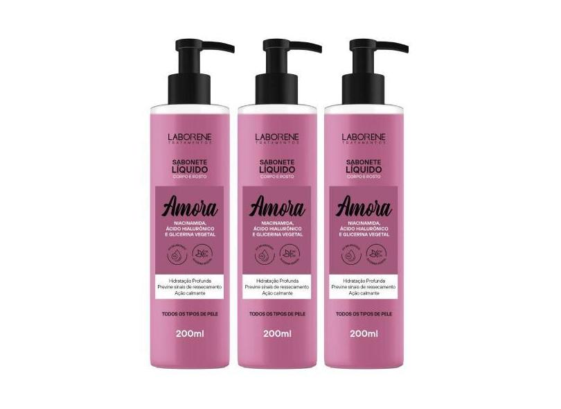 Kit 03 Sabonete Corporal e Facial Amora Laborene 200ml