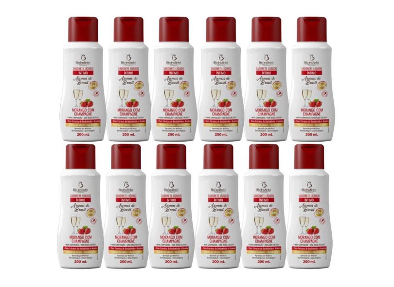 Kit 12 Sabonete Íntimo Morango Champagne 200Ml - Bio Instinto