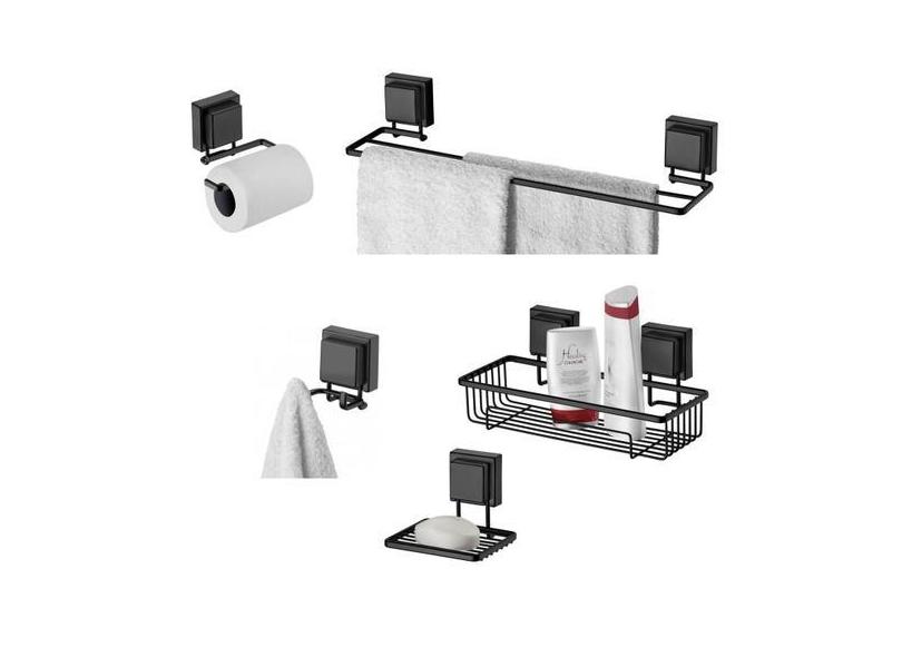 Kit Toalheiro Gancho Sabonete Papeleira Ventosa Preto Fosco - Future