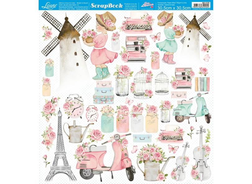 Papel Scrapbook Dupla Face Ícones Femininos e Xadrez Sd-1179 30,5x30,5cm Litoarte