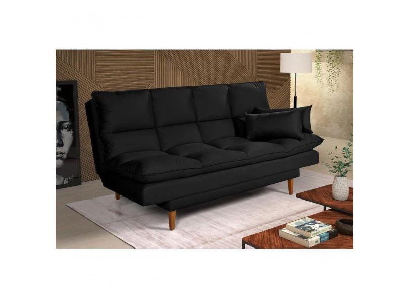 Sofá Cama Andorra 3 Lugares Império Reclinável Casal Pés Madeira Suede Preto 381