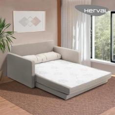 Sofá-Cama Casal 2 Lugares Herval Aurora, Linho Bege, 146 Cm