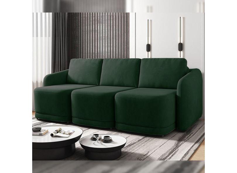 Sofá Cama Modulado Retrátil E Reclinável Decorativo Varsóvia 306cm Veludo Verde G33 - Gran Belo