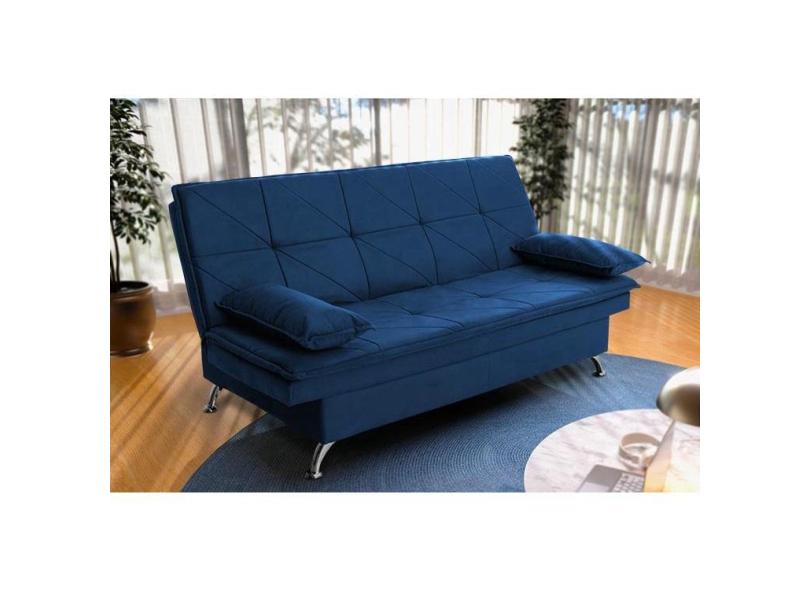 Sofá Cama Pérsia 3 Lugares Suede Velut Azul Marinho - King House