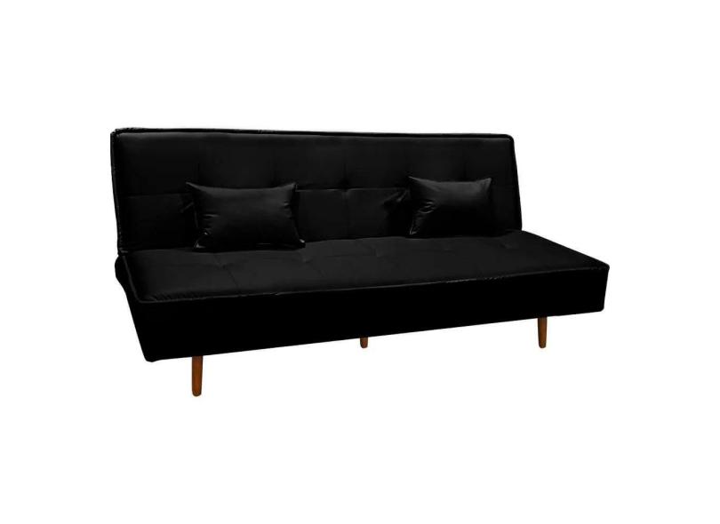 Sofá Cama Silver 3 Lugares Reclinável 1,92 Material Sintético Preto Shop das Cabeceiras