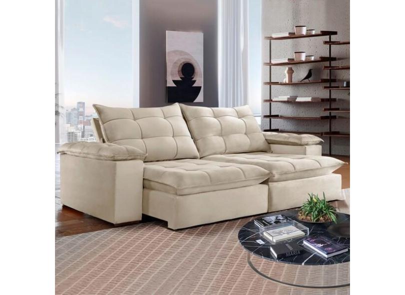 Sof 4 Lugares Retr til E Reclin vel Espanha 250cm Bege Claro