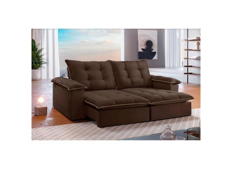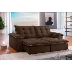 Sof Retr til E Reclin vel 2,50m 4 Lugares Marrom/bege