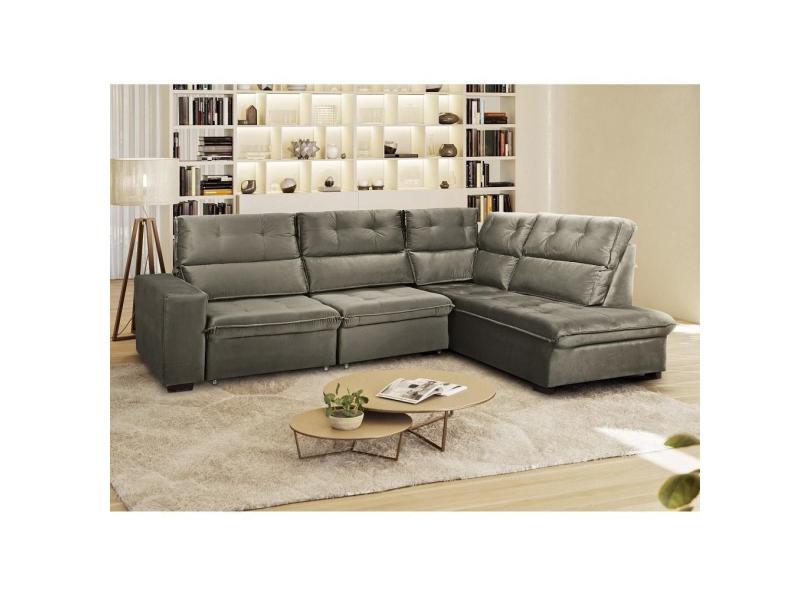 Sofá 4 Lugares 280/210cm Retrátil Reclinável Veludo Bárbara Takei