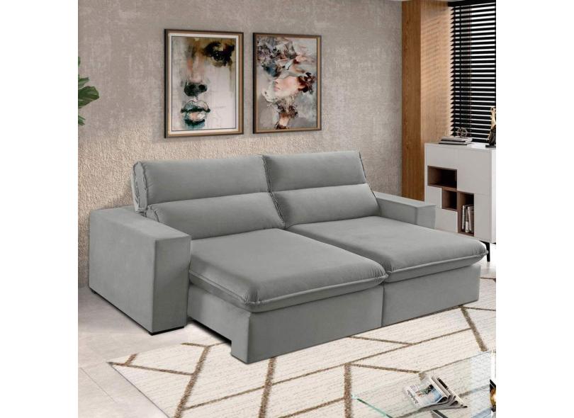 Sofá 4 Lugares 290cm Retrátil e Reclinável Free Veludo Cinza prateado