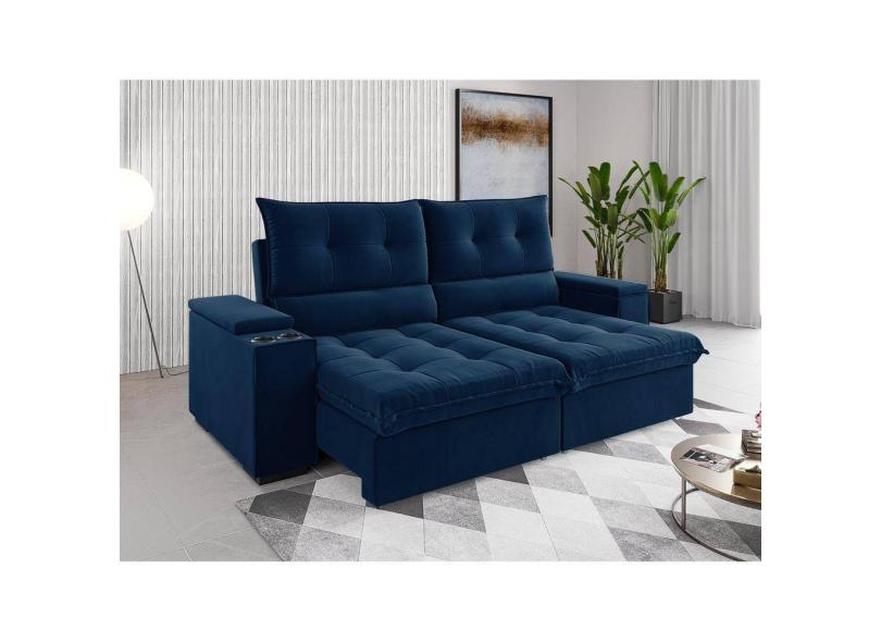Sofá 4 Lugares Horus Bipartido 230cm Retrátil e Reclinável com Porta Copos Azul