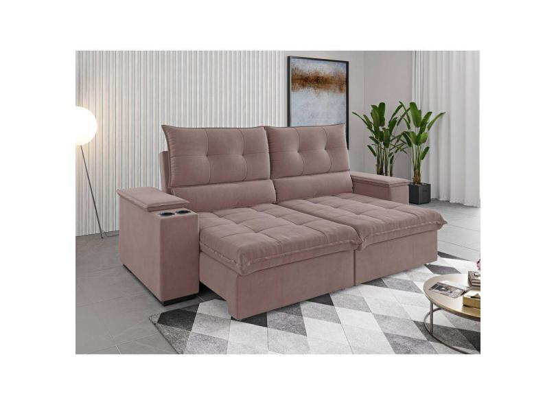 Sofá 4 Lugares Horus Bipartido 230cm Retrátil e Reclinável com Porta Copos Rosa