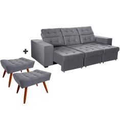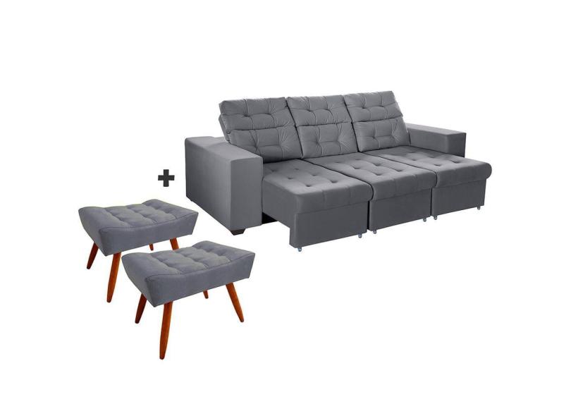 Sofá 4 Lugares Itália Plus 2,50m Retrátil, Reclinável, com 2 Puffs ,Pés Palito, Cinza