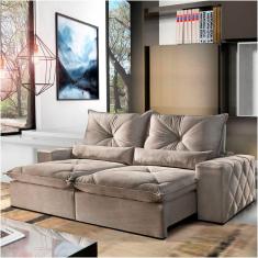 Sofá 4 Lugares Retrátil e Reclinável 2,50m Veludo Marrom Acinzentado Laguna - Móveis Mix