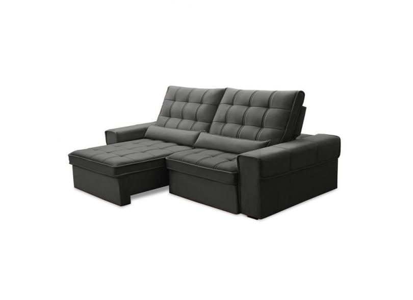 Sofá 4 Lugares Retrátil e Reclinável Alasca Veludo Chumbo