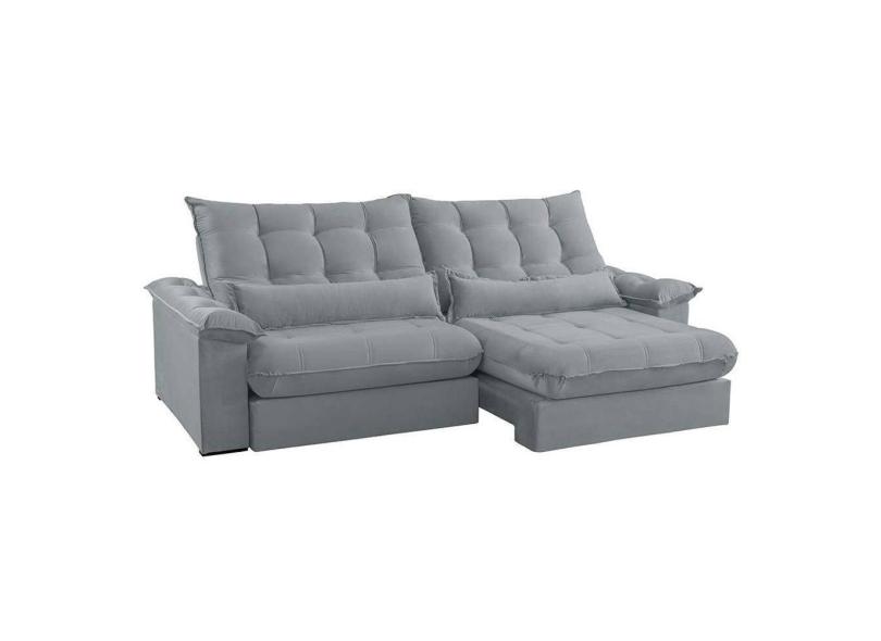 sofá 4 lugares retrátil e reclinável aruba veludo cinza claro 250 cm