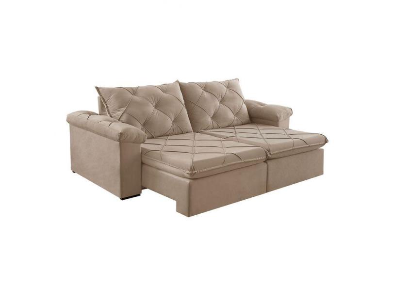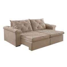 Sofá 4 Lugares Retrátil e Reclinável Astor Veludo Bege