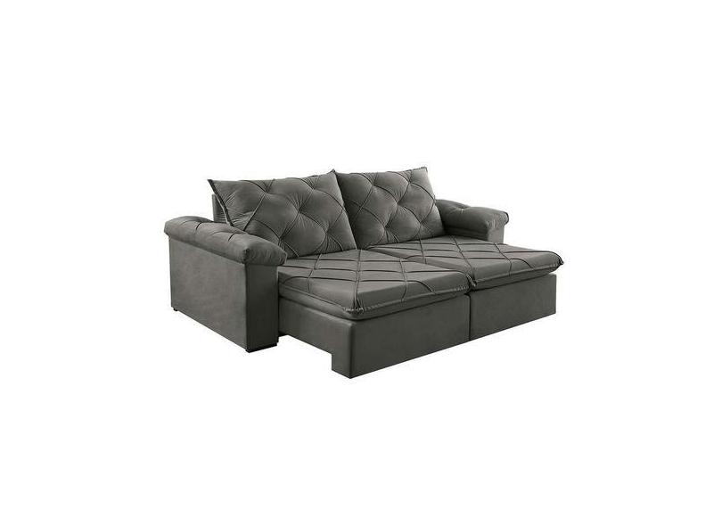 Sofá 4 Lugares Retrátil e Reclinável Astor Veludo Cinza - Estofart