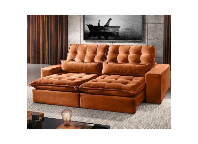 Sofá 4 Lugares Retrátil E Reclinável Bruna 2.50m Veludo Terracota Terracota