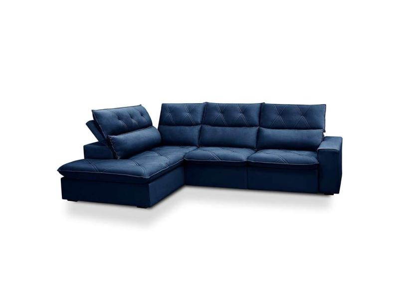 Sofá 4 Lugares Retrátil e Reclinável com Chaise Esquerdo Noruega Veludo Azul