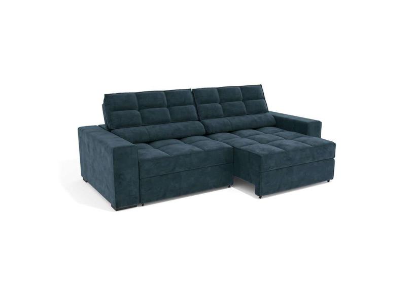sofá 4 lugares retrátil e reclinável deluxe molas veludo azul marinho 268 cm