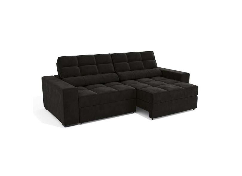 sofá 4 lugares retrátil e reclinável deluxe molas veludo preto 268 cm