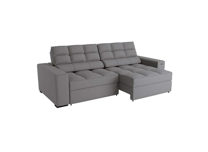 sofá 4 lugares retrátil e reclinável deluxe molas veludo titânio 268 cm