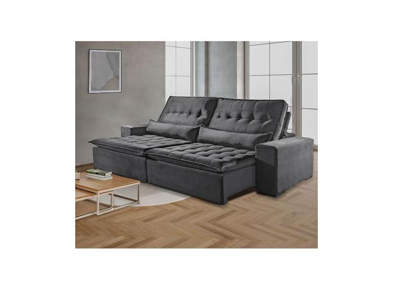 Sofá 4 Lugares Retrátil e Reclinável Elegance 2.50 Metros Veludo Móveis Mix