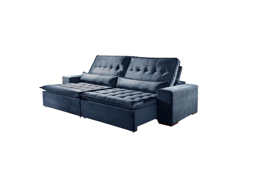Sofá 4 Lugares Retrátil e Reclinável Elegance 2.50m Veludo Azul Sierra - Móveis Mix