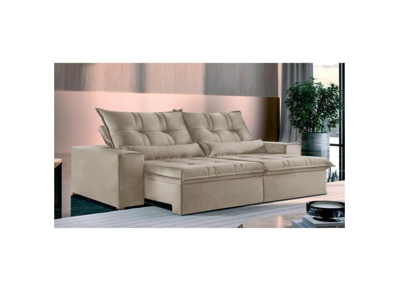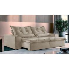 Sofá 4 Lugares Retrátil e Reclinável Galícia Veludo com Molas Bege Castor