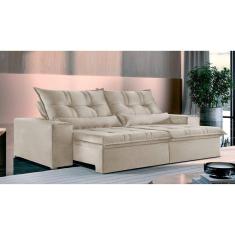 Sofá 4 Lugares Retrátil e Reclinável Galícia Veludo com Molas Bege Marfim