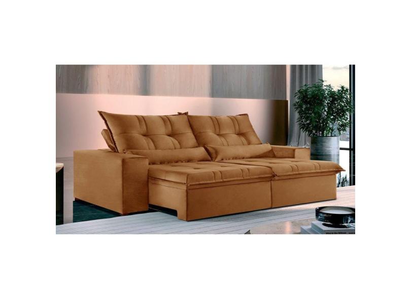 Sofá 4 Lugares Retrátil e Reclinável Galícia Veludo com Molas Cobre Terracota