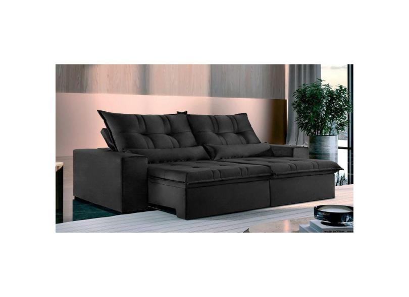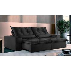 Sofá 4 Lugares Retrátil e Reclinável Galícia Veludo com Molas Preto