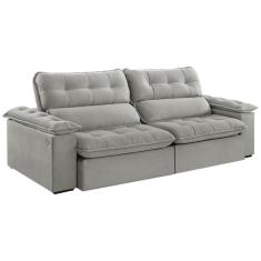 Sofá 4 Lugares Retrátil e Reclinável Jobi com USB Veludo Cinza Prateado 254 cm