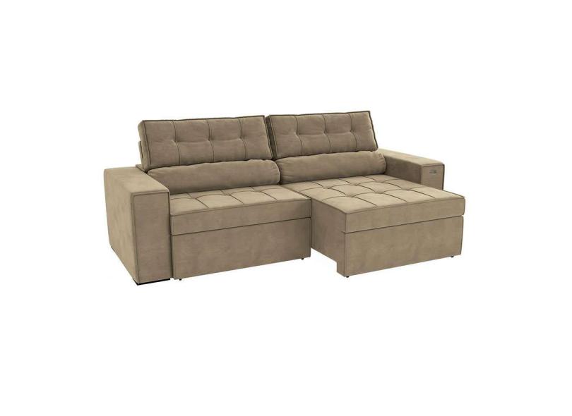 sofá 4 lugares retrátil e reclinável lanus veludo bege 250 cm
