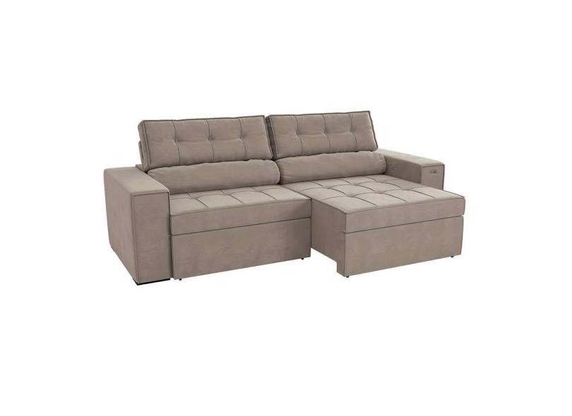 sofá 4 lugares retrátil e reclinável lanus veludo cinza claro 250 cm