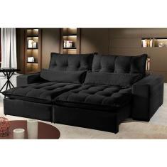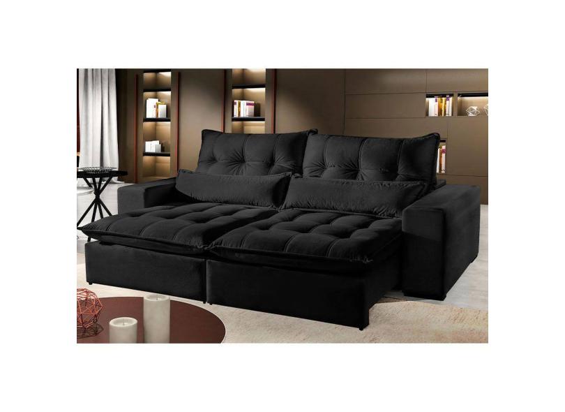 Sofá 4 Lugares Retrátil e Reclinável Máximo 2.50m Veludo Preto