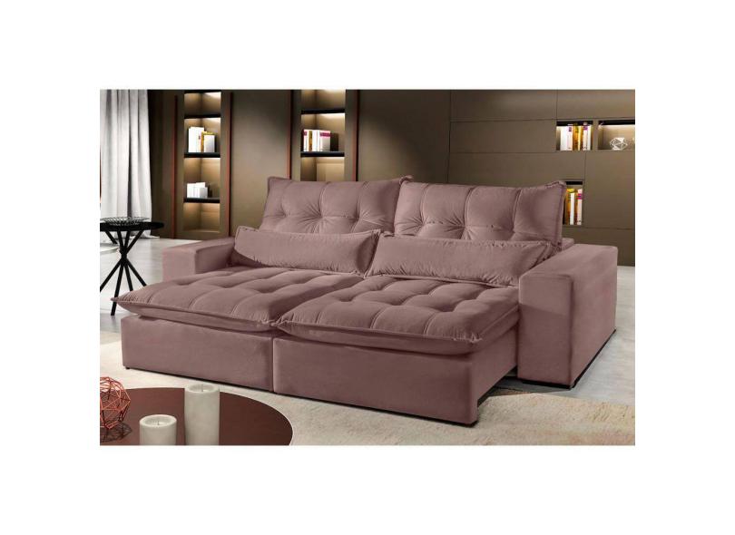 Sofá 4 Lugares Retrátil e Reclinável Máximo 2.50m Veludo Rose Móveis Mix