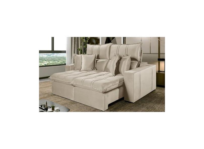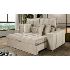 Sofá 4 Lugares Retrátil e Reclinável México Veludo com Molas Ensacadas Bege Marfim