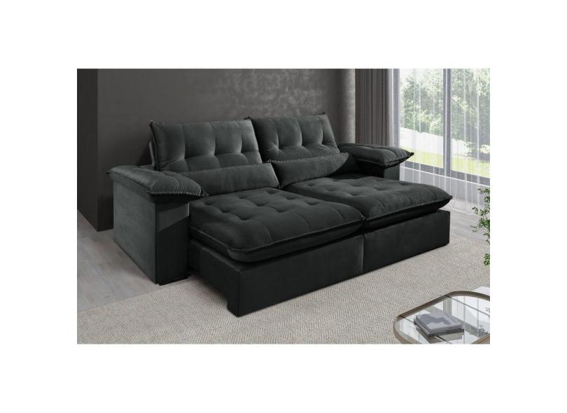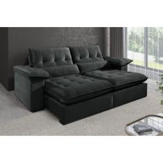 Sofá 4 Lugares Retrátil e Reclinável Mônaco Veludo com Molas Ensacadas Preto