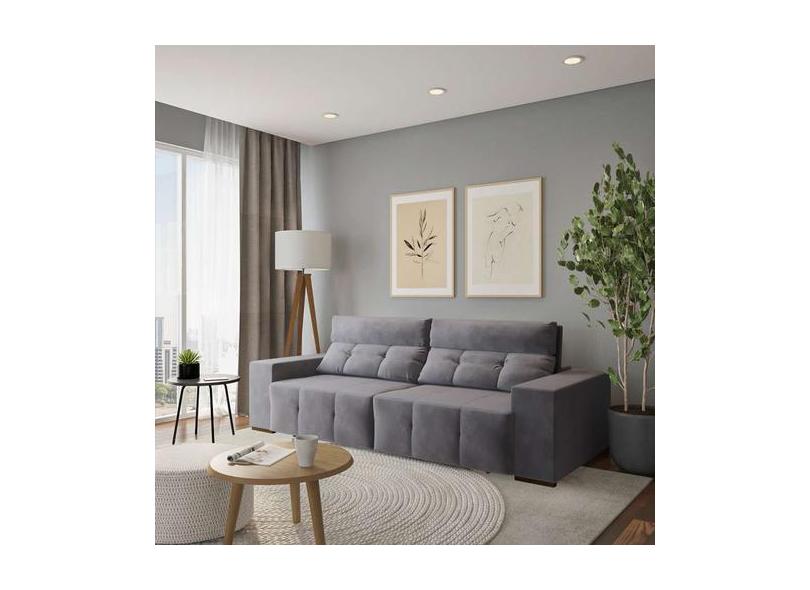 Sofá 4 Lugares Retrátil E Reclinável Parione Suede Cinza - Mobly